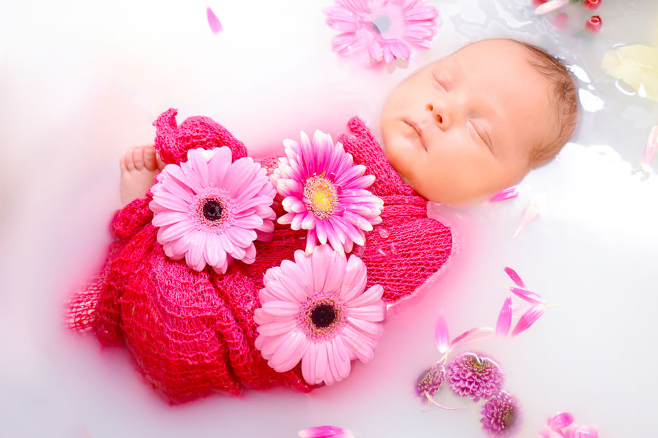Cette séance met en valeur la pureté et la délicatesse des premiers jours de vie. Bébé est installé dans un petit bain tiède, rempli d’eau et d’un voile de lait, accompagné de fleurs fraîches, feuillages ou éléments naturels soigneusement choisis. Le rendu est à la fois artistique, tendre et apaisant.